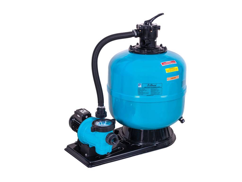 Plastik stant üzerine bir adet havuz pompası ile monte edilmiş cam elyaf katkılı polyester kum filtresinden oluşur. Üstten 1 1/2” altı yollu vanası, filtre ve pompa bağlantısı mevcuttur. Pompa fiyata dahildir.